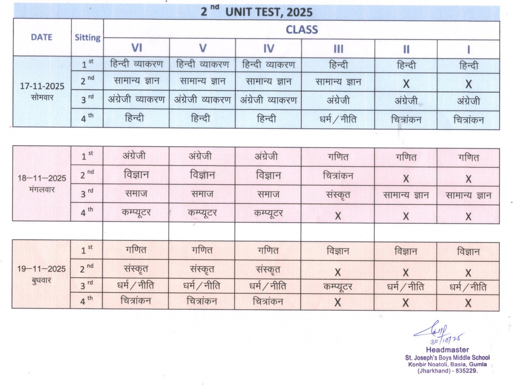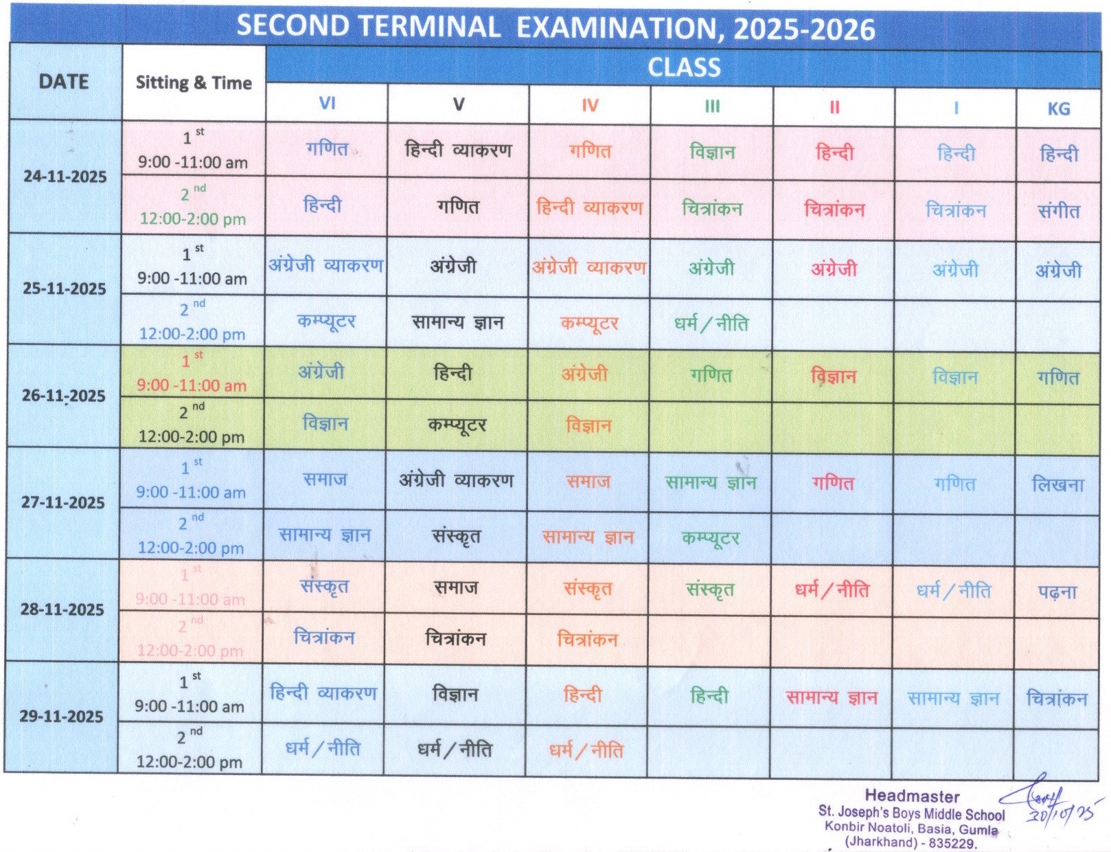 Noticeboard High School Test Exam Time-Table for Class 10 Second Terminal Exam Time-Table Middle School Second Unit Test 2025-26 Second Terminal Exam 2025-26 DOWNLOAD MODEL QUESTION PAPER Hindi English Mathematics Science So-Science Sanskrit